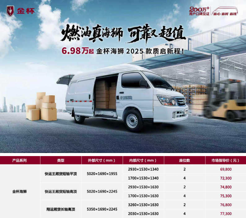 金杯海狮2025款还出格推出至高8000元的“双补”购车礼遇,金杯海狮2025款正式上市,不止表现正在购车成本低,一趟多拉、一趟搞定,适用取实惠一步到位?
